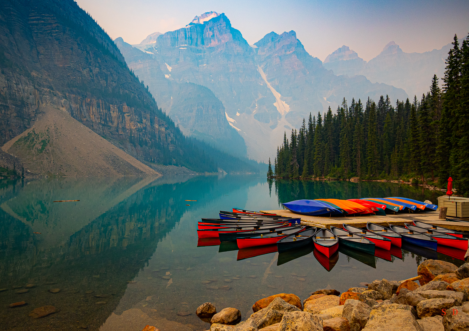 It was a fantastic trip, despite the heavy smoke from the many wildfires shrouding the landscape. It made for some interesting photos, as you can see in the photo of Lake Louise, above.